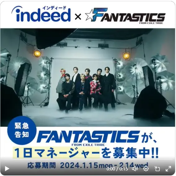【締切】2/14(水)23:59【応募】X【提供】Indeed キャンペーン概要 /#IndeedxFANTASTICS#FANTASTICSマネージャー募集キャンペーン 🤝 \FANTASTICS from EXILE TRIBEの1日マネージャー体験の仕事🧑💻をしてくれる方を3⃣名募集します! <応募方法>①@IndeedJapanをフォロー② この投稿をリポスト応募期限:2/14(水)23:59まで 応募者全員に特別動画をすぐにリプライでお届け!また抽選で1️⃣0️⃣名様に #FANTASTICS メンバー全員の直筆サイン✍️入りアクリルスタンドが当たる🎁‼