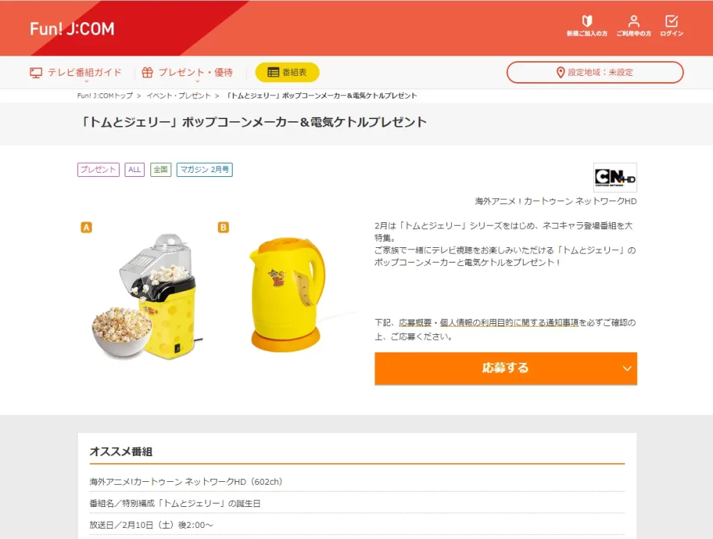 プレゼント名 「トムとジェリー」 ポップコーンメーカー&電気ケトルプレゼント