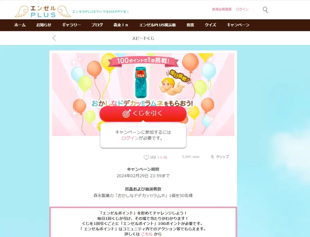 くじを1回引くごとに「エンゼルポイント」100ポイントが必要です。