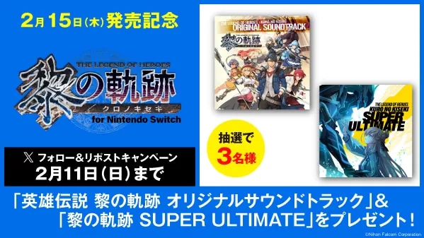 抽選で3名様に「英雄伝説 黎の軌跡 オリジナルサウンドトラック」&「黎の軌跡 SUPER ULTIMATE」をプレゼント