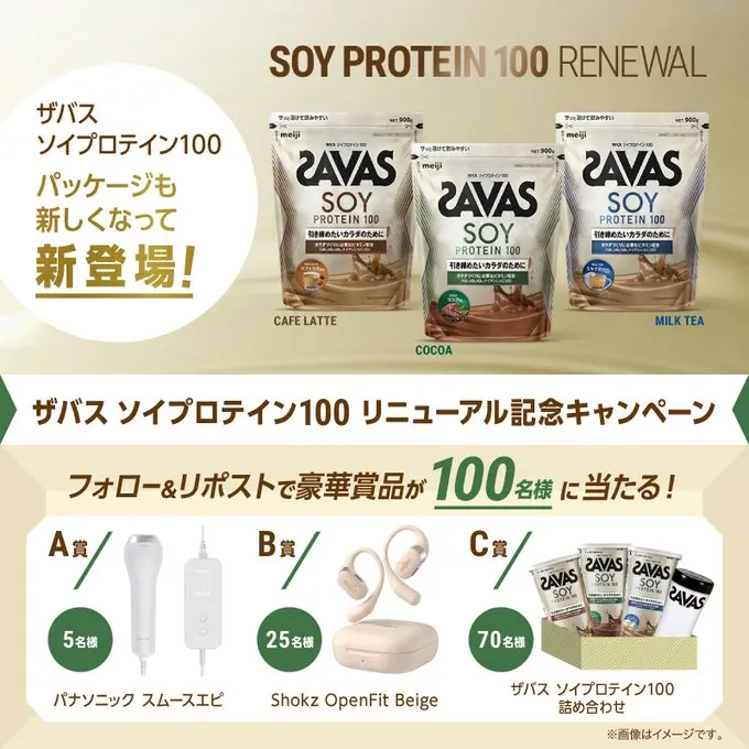 【締切済み】【100名】「パナソニック ス「Sムースエピ」hokz OpenFit Beige」「ザバス ソイプロテイン詰め合わせ」が当たる!