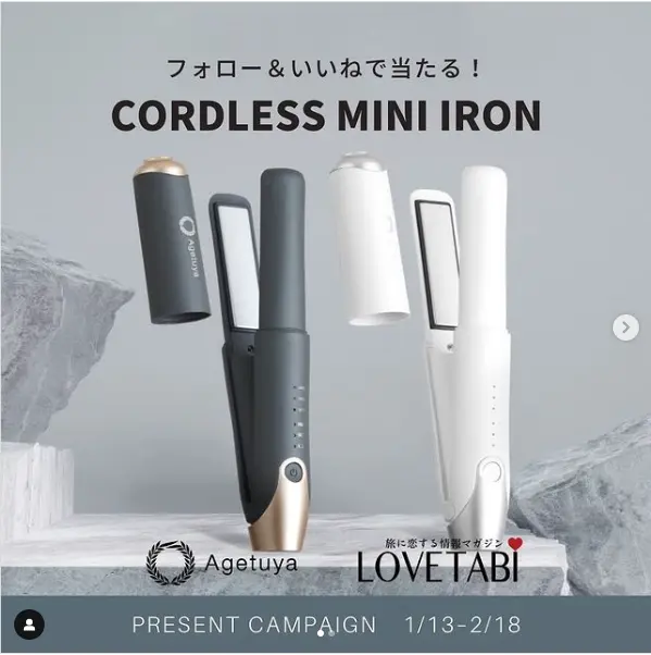 ①Agetuya( @agetuya_official )およびLOVETABI(@lovetabi_travel)をフォロー