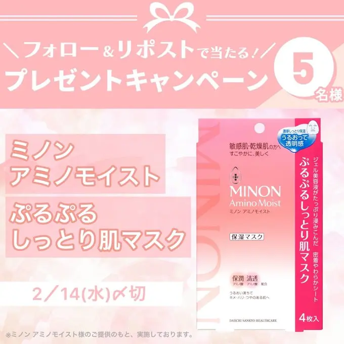 ミノン アミノモイストの「ぷるぷるしっとり肌マスク」をプレゼント🎁