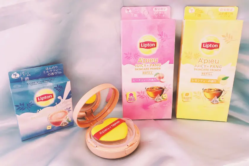 紅茶ブランド「リプトン」は、ミシャジャパンが展開するコスメブランド「A’pieu(アピュー)」の生バーム下地「アピュー ジューシーパン スキンケアプライマー」とのコラボコスメを、数量限定で発売中。