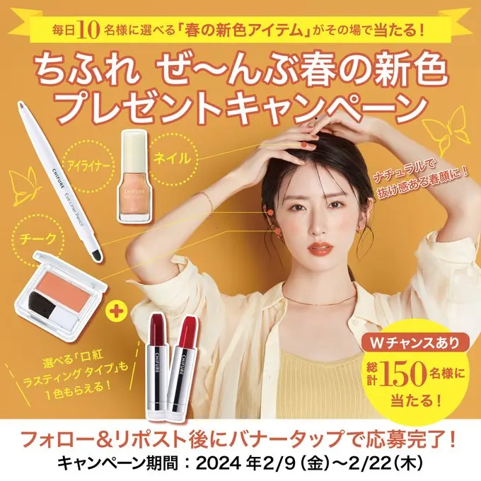 合計140名様に選べるちふれアイテムがその場で当たる🎯