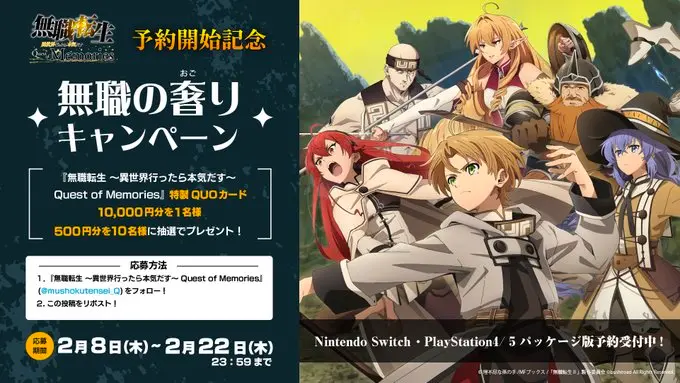『#無職転生QoM』 特製デザインQUOカード10,000円分を1名様、500円分を10名様に抽選でプレゼント!