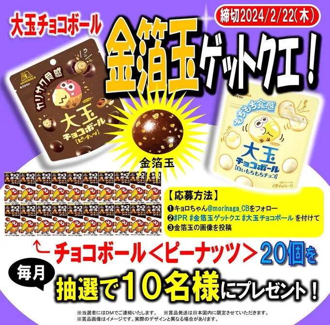毎月抽選で10名様に、チョコボール<ピーナッツ>20個をプレゼント🎁
