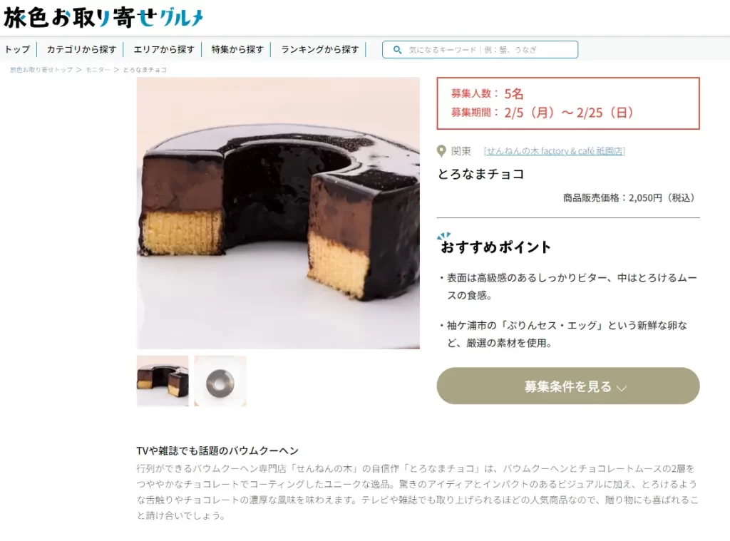『モニター募集中の商品一覧』 より、食べたい商品に応募