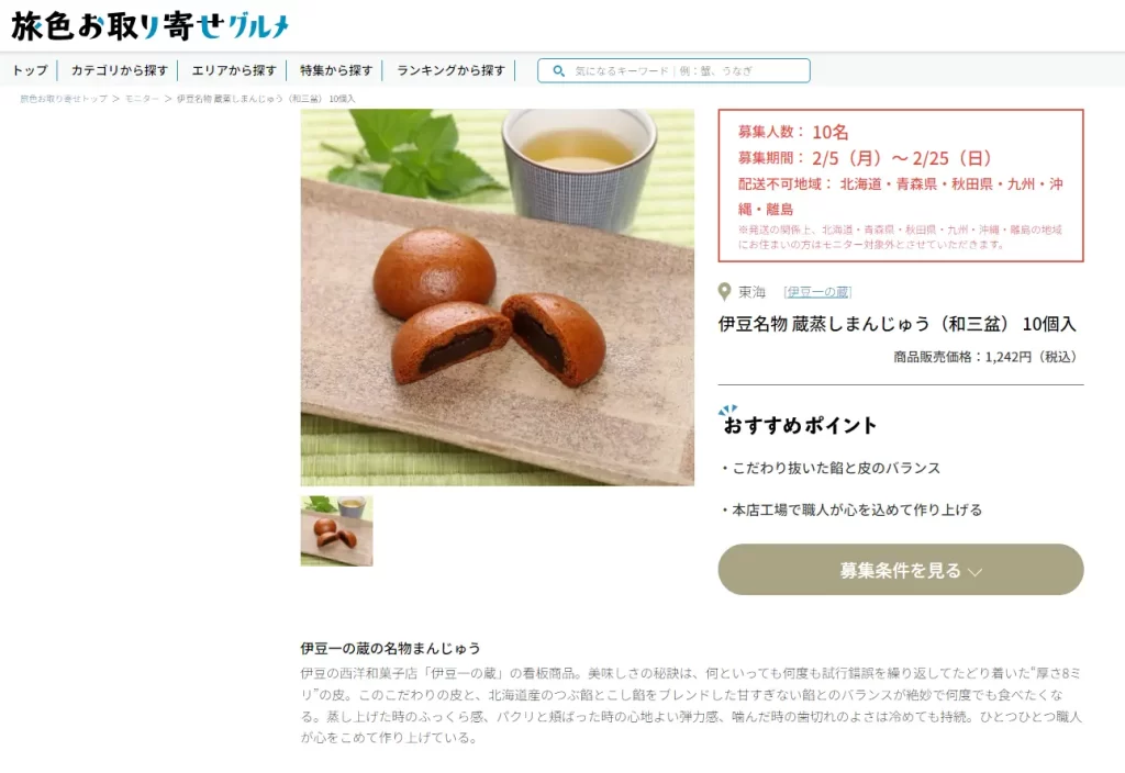『モニター募集中の商品一覧』 より、食べたい商品に応募
