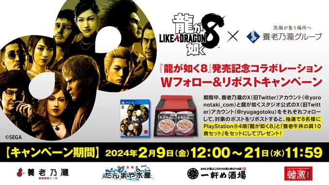 『龍が如く8』発売&コラボ記念Wフォロー&リポストキャンペーン🎉