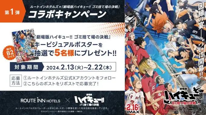 #ルートインホテルズ×『劇場版ハイキュー!! ゴミ捨て場の決戦』コラボキャンペーン開催‼️