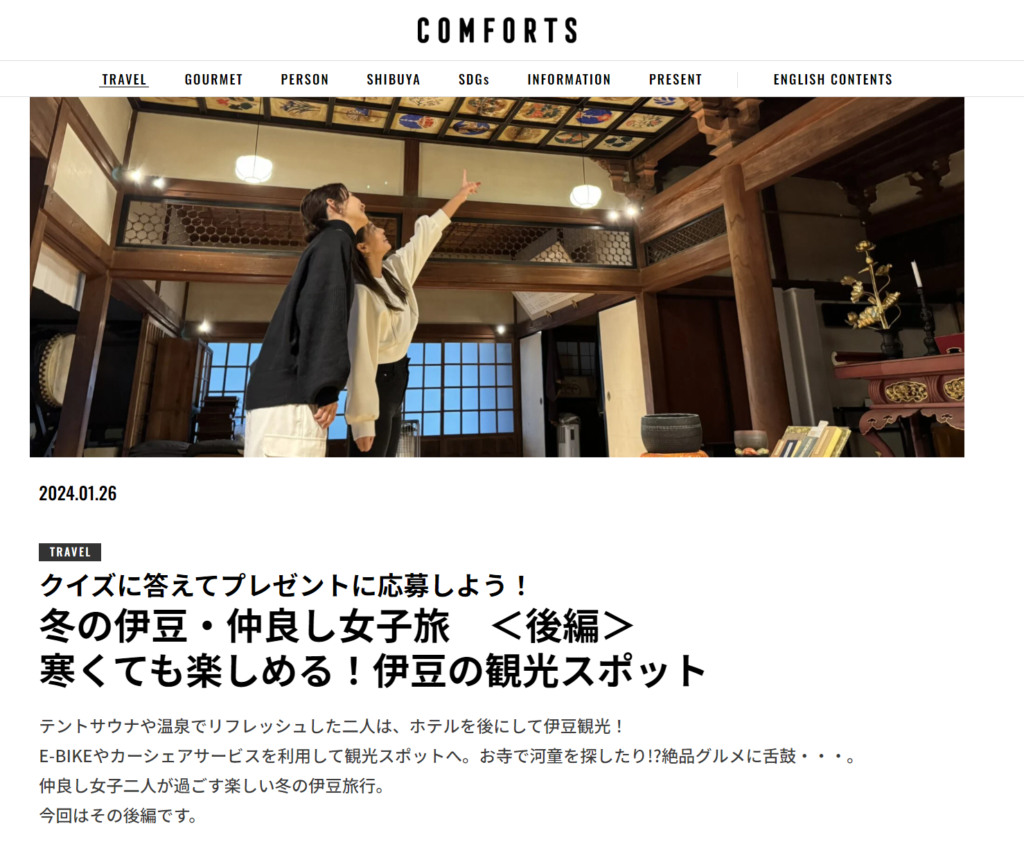 伊豆今井浜東急ホテルのペア宿泊券を1名様にプレゼントいたします。クイズに答えてご応募ください。