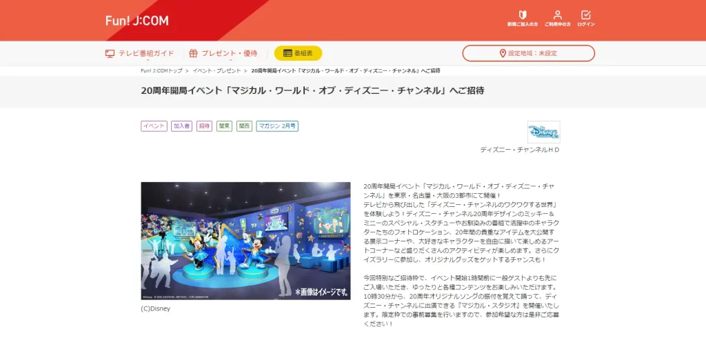 20周年開局イベント「マジカル・ワールド・オブ・ディズニー・チャンネル」へご招待