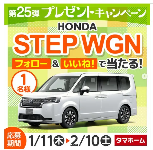【締切済み】【1名】タマホーム HONDA「STEP WGN」プレゼントキャンペーン