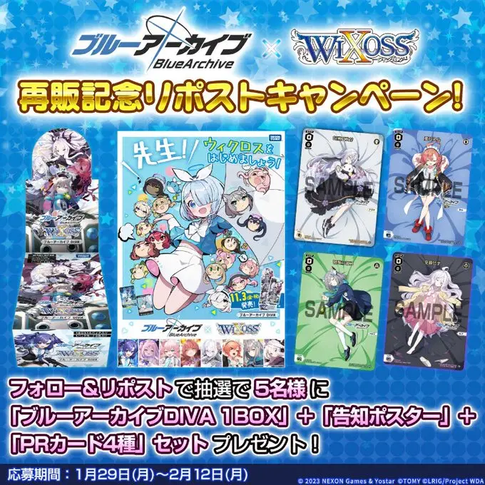 【締切済み】【5名】ブルーアーカイブDIVA 1BOX+告知ポスター+PRカード(アズサ/ネル/シロコ/ヒナ)4種が当たる!