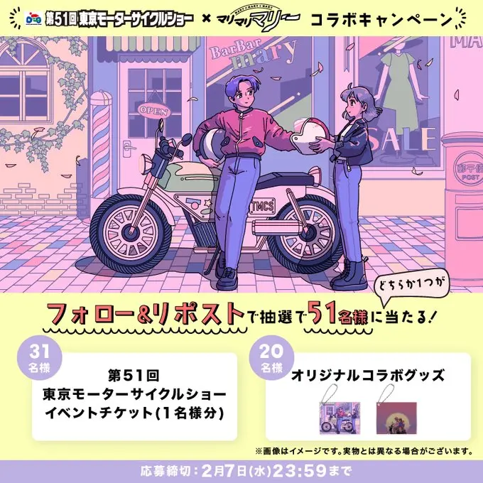 【締切済み】【51名】「第51回東京モーターサイクルショーチケット」「マリマリマリーコラボグッズ」が当たる!